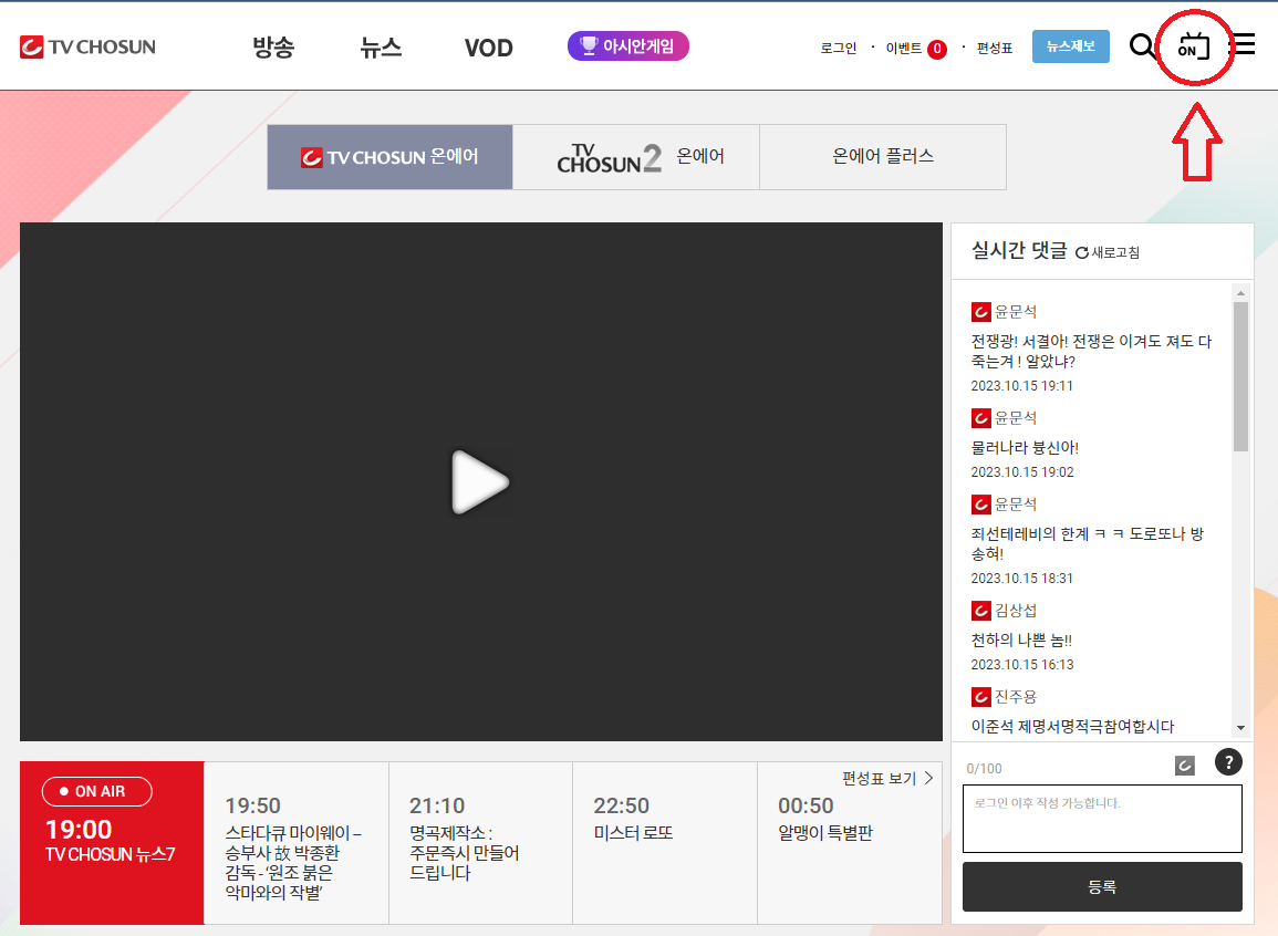 [TV조선 온에어 무료 실시간 방송 이용방법][PC]